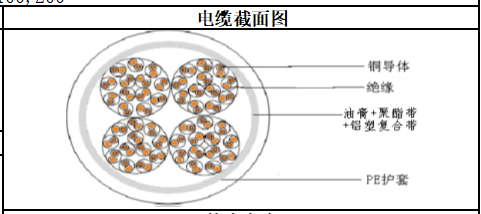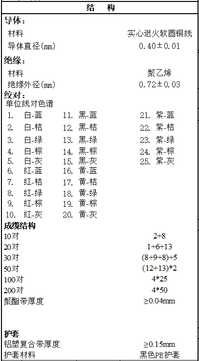 HYA大對數(shù)導(dǎo)體采用實心退火軟圓銅線,聚乙烯 絕緣,聚酯帶+鋁塑復(fù)合帶, PE護套料