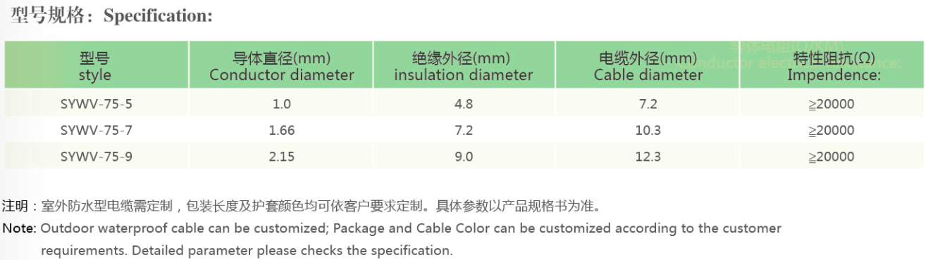導(dǎo)體單根,絕緣物理發(fā)泡聚乙烯,內(nèi)屏蔽層鋁箔屏蔽,外屏蔽層鍍錫銅或鋁鎂合金絲編制帶,護(hù)套層聚氯乙烯,適用于模擬安防監(jiān)控攝像頭,視頻會議,模擬可視對講,以及HFC廣電廣電混合網(wǎng)絡(luò)中電視終端出口。最大帶寬為1GHz